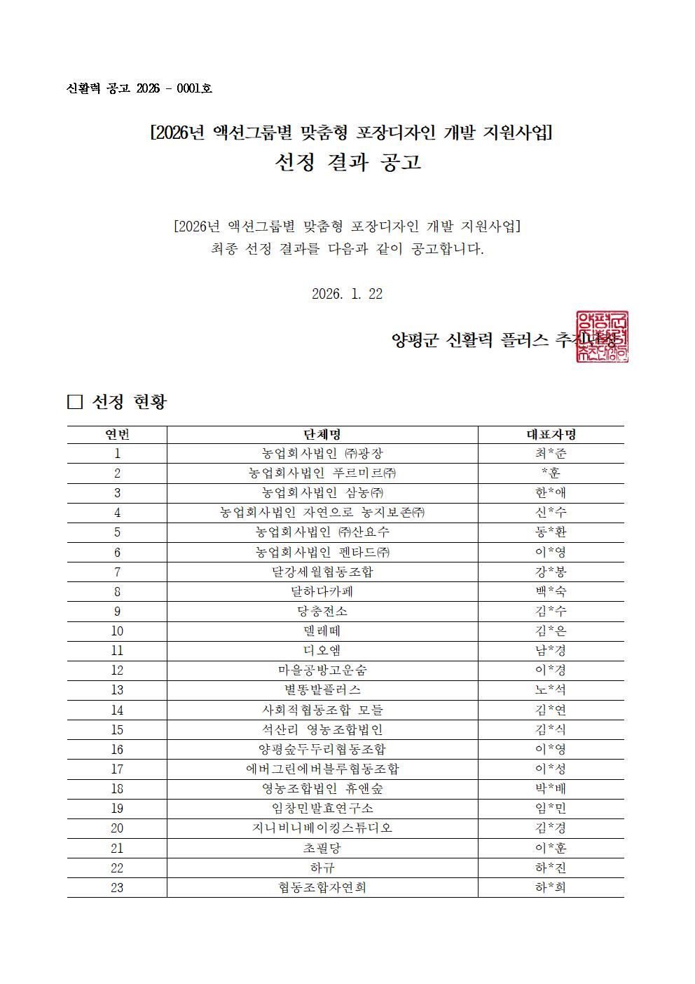 - 사 업 명 : 2026년 양평군 액션그룹별 맞춤형 포장디자인 개발 지원사업