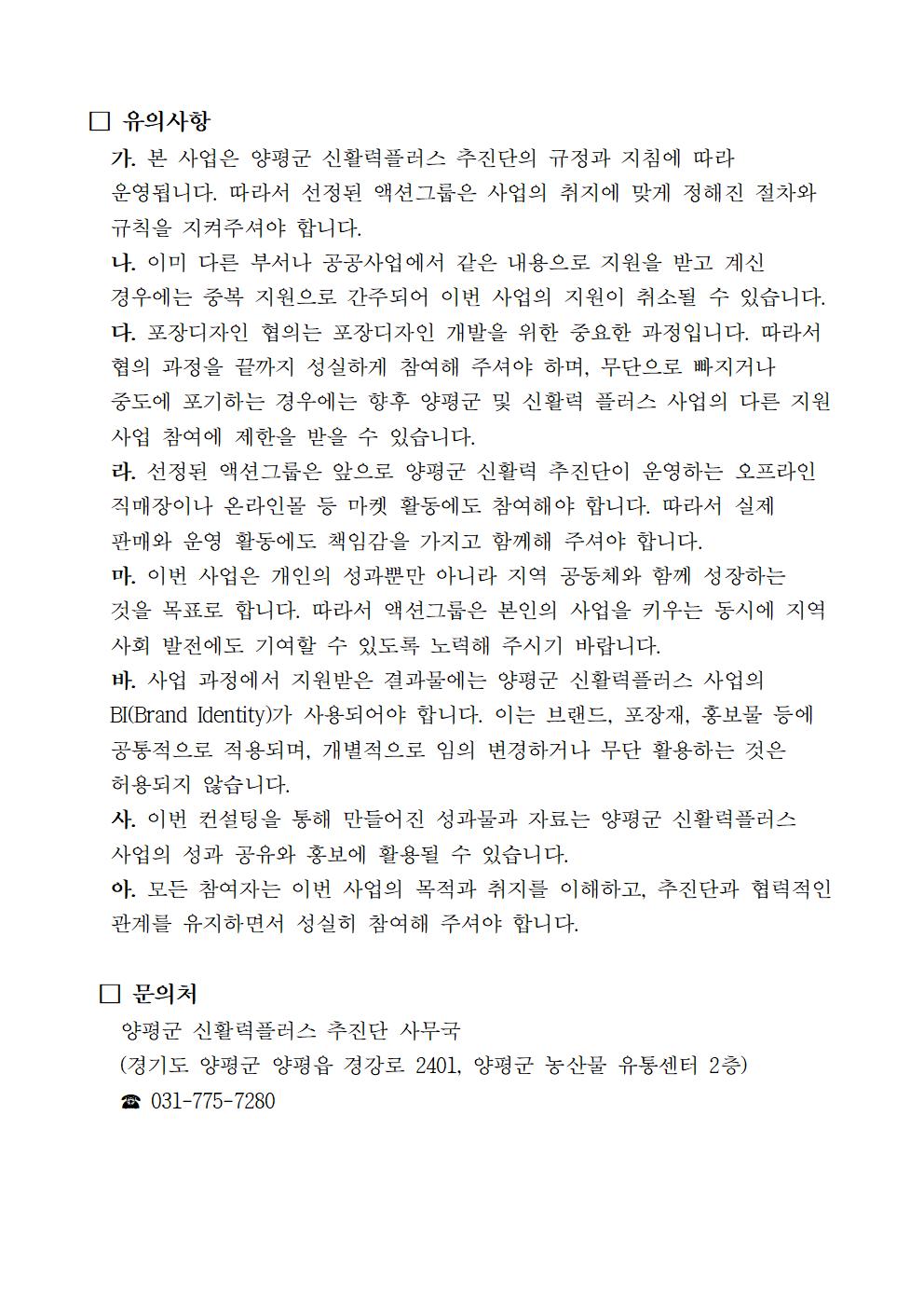 - 모집대상 : 양평군 신활력 액션그룹